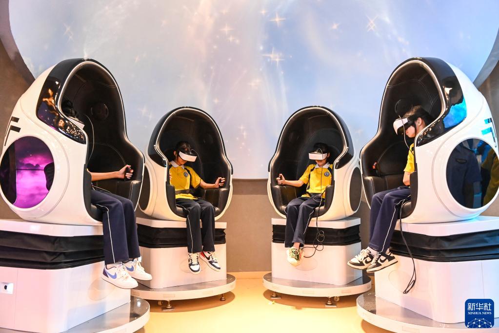 6月19日,在廣西禁毒教育示范基地,學(xué)生們通過(guò)VR設備認識吸毒的危害。