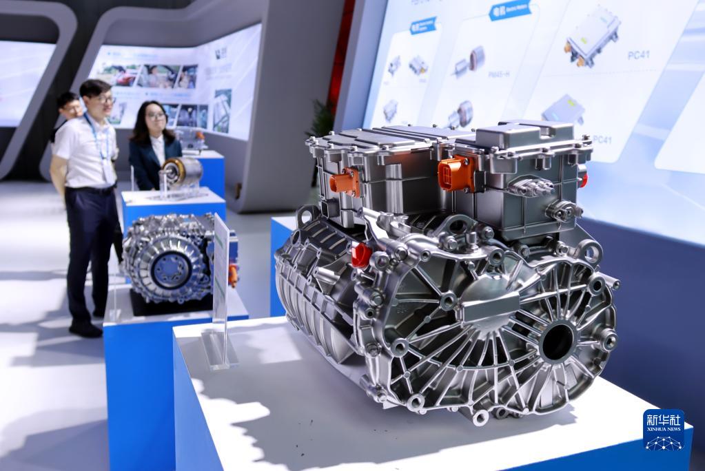 6月19日,觀(guān)眾在2023世界新能源博覽會(huì )現場(chǎng)觀(guān)看新能源汽車(chē)多合一驅動(dòng)總成。