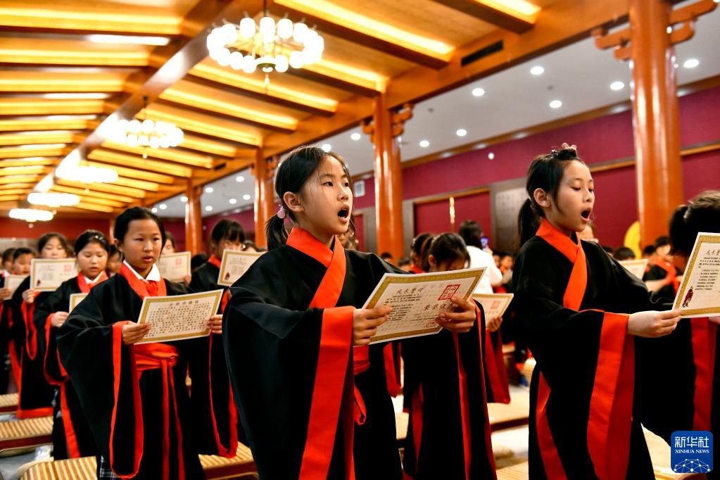 2023年6月9日,來(lái)自濟南大學(xué)附屬小學(xué)的同學(xué)們在曲阜市參加研學(xué)活動(dòng),并誦讀經(jīng)典。