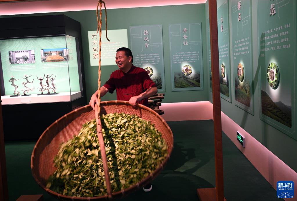 6月20日,烏龍茶制作技藝(鐵觀(guān)音制作技藝)國家級非遺代表性傳承人魏月德在展覽現場(chǎng)展示制茶技藝。