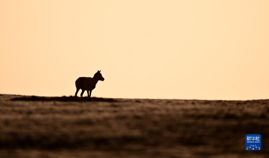 一只藏羚羊在可可西里卓乃湖區域活動(dòng)(6月18日攝)。