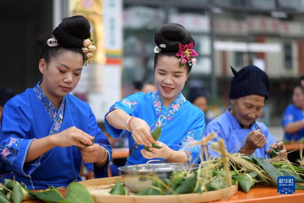 當日,在貴州省黔東南苗族侗族自治州臺江縣萃文街道方黎灣社區,當地干部送來(lái)了糯米、粽葉、紅豆等,與搬遷群眾一起包粽子,迎接端午節。