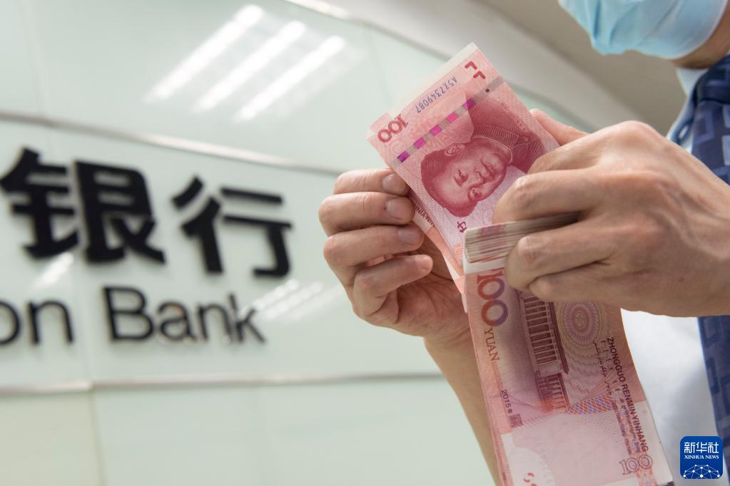 6月20日,江蘇省海安市一家銀行的工作人員在清點(diǎn)人民幣。