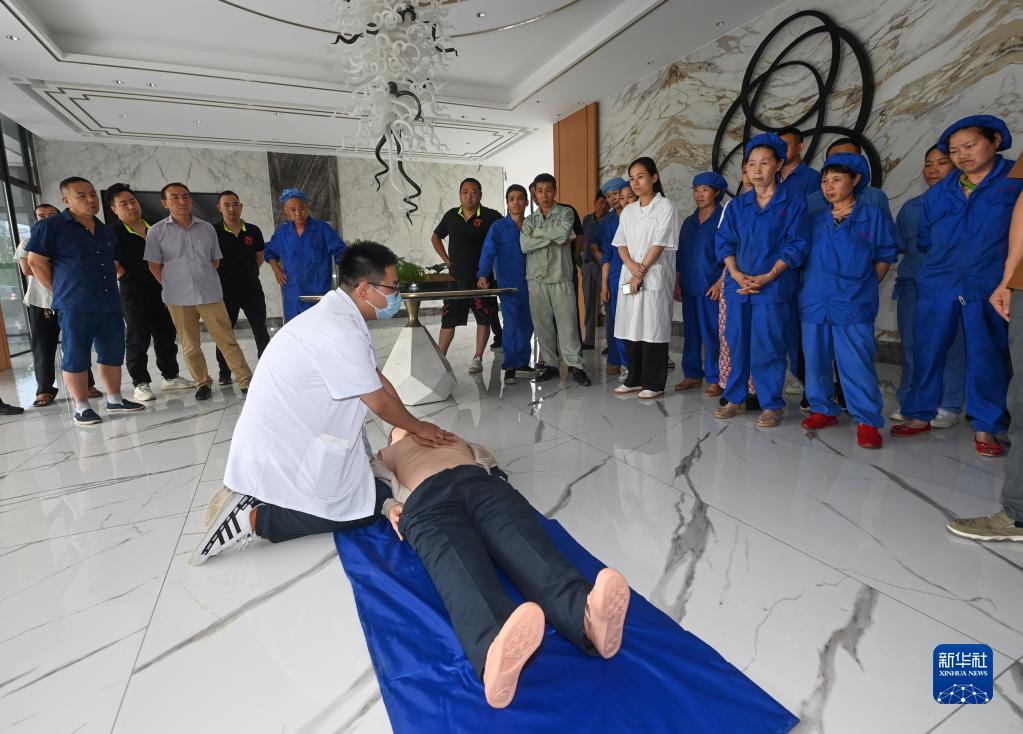 6月21日,道場(chǎng)鄉衛生院醫護人員對企業(yè)員工開(kāi)展心肺復蘇實(shí)操培訓。