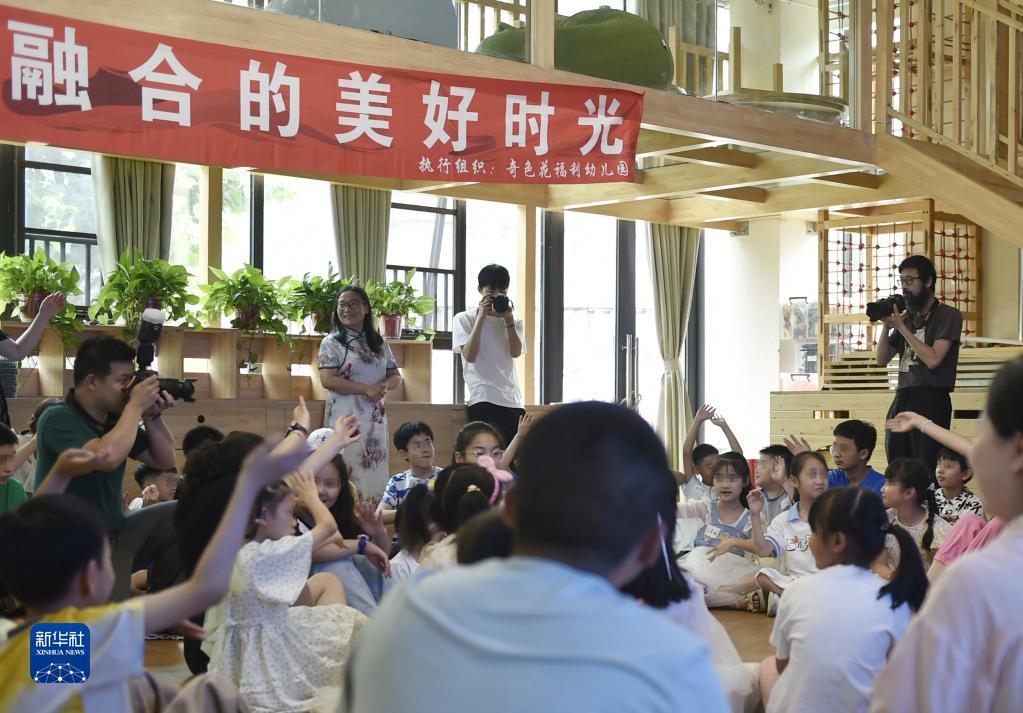 6月18日,在河南省鄭州市奇色花福利幼兒園,從該園畢業(yè)的普通兒童和特殊需要兒童重回幼兒園參加“老友記”聚會(huì )活動(dòng)。