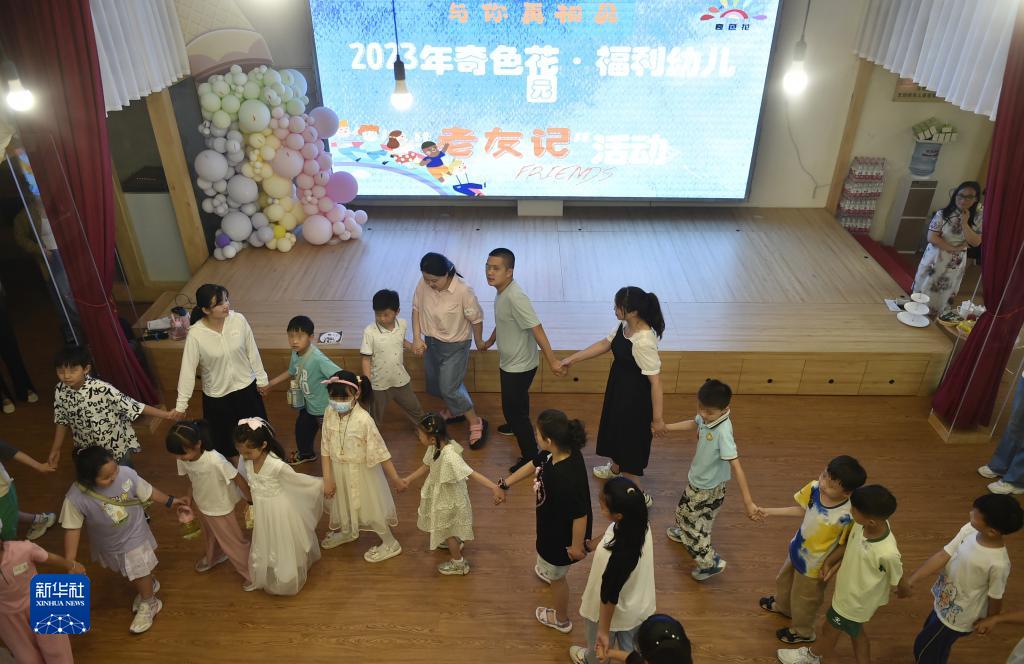6月18日,在河南省鄭州市奇色花福利幼兒園,從該園畢業(yè)的普通兒童和特殊需要兒童重回幼兒園參加“老友記”聚會(huì )活動(dòng)。