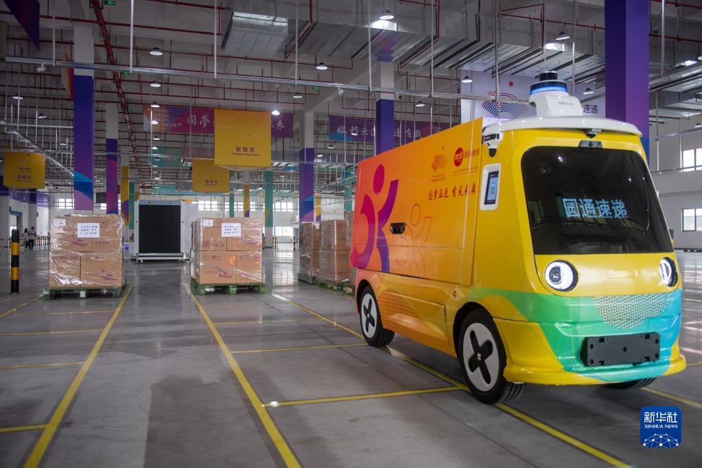 6月21日,無(wú)人車(chē)在第19屆杭州亞運會(huì )物流中心內轉運包裹。