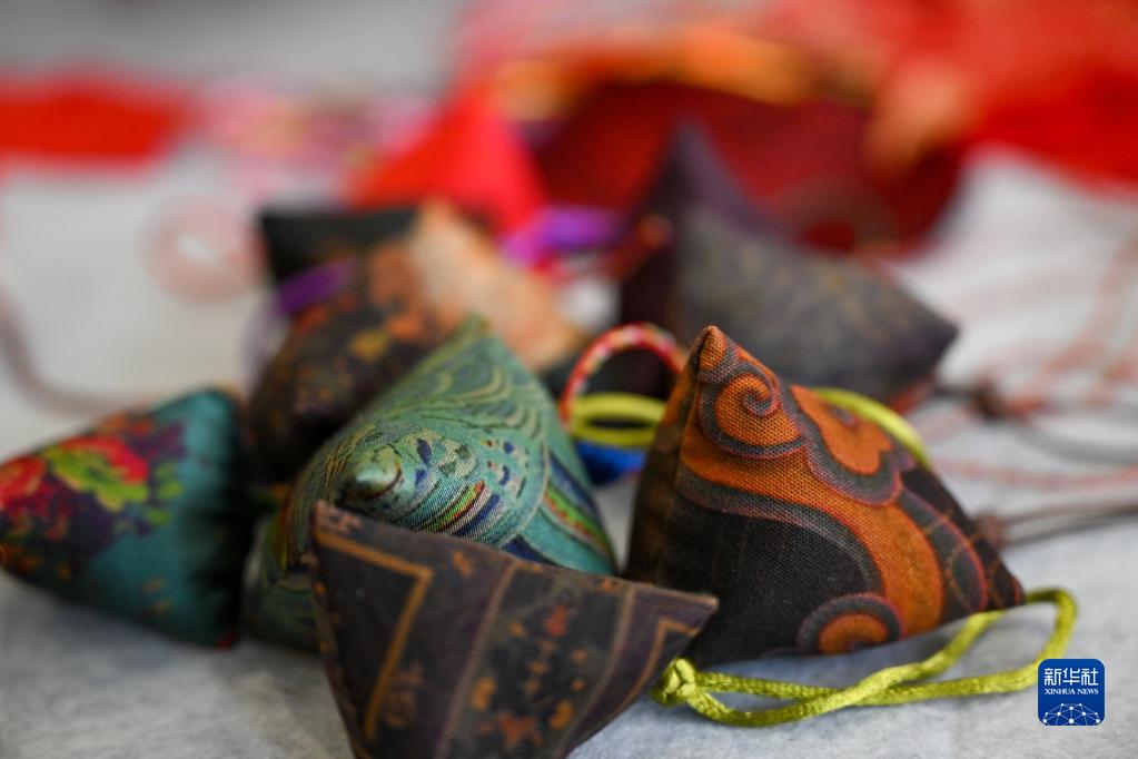 這是6月20日拍攝的陳玉秋制作的端午節香囊。
