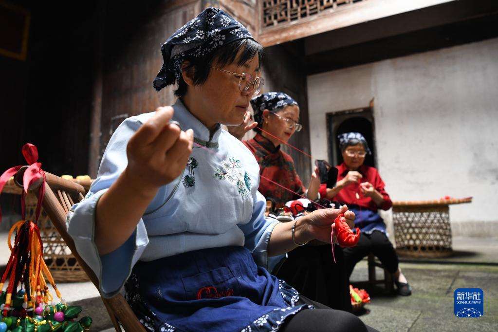 安徽省黃山市歙縣許村是一座有著(zhù)上千年歷史的古村落。每年端午節,父母、長(cháng)輩給孩子們送虎頭鞋、香囊掛件等是許村世代相傳的習俗。如今,許村仍有不少村民堅持手工縫制虎頭鞋、編制香囊掛件,這些“守藝人”希望能留住鄉村的文化底色,讓更多人了解、學(xué)習傳統技藝。