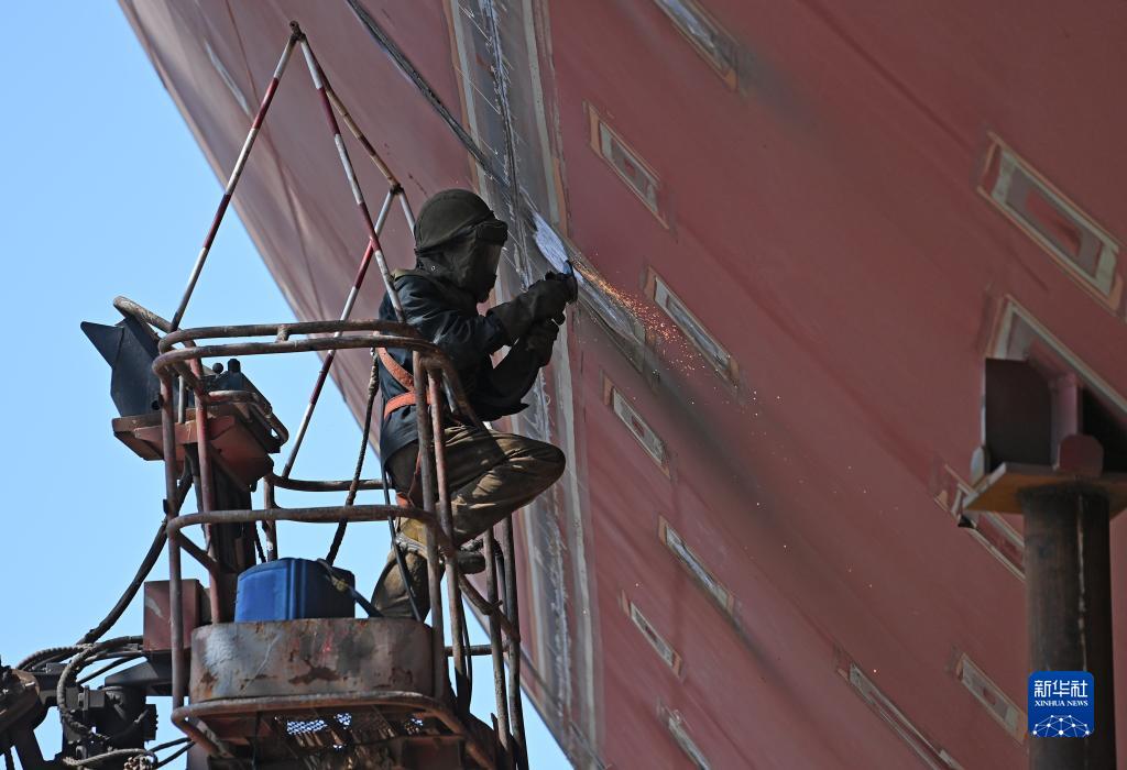 中船(天津)船舶制造有限公司是中國船舶集團大連船舶重工集團有限公司在天津建立的造船基地,主要建造大型原油輪、大型集裝箱船、大型散貨船。今年以來(lái),來(lái)自法國等國家的集裝箱船訂單不斷,生產(chǎn)訂單已排至2027年。