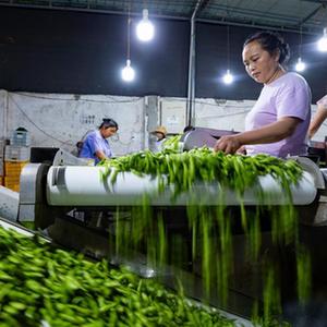 近日,官倉街道的毛豆進(jìn)入收獲期,等到下午氣溫適宜,收割大軍就開(kāi)始下地勞作。經(jīng)過(guò)采收、挑選、清洗、再次分選等一系列步驟,新鮮毛豆通過(guò)冷庫保鮮后裝入冷鏈物流車(chē)運往全國各地。從下午到次日清晨,當地農民辛勤勞作,經(jīng)歷一個(gè)個(gè)不眠之夜,將田間的一捧毛豆變?yōu)槿藗儾妥郎系囊槐P(pán)美食。