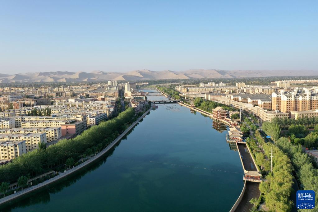 這是6月14日拍攝的敦煌城區黨河風(fēng)情線(xiàn)(無(wú)人機照片)。