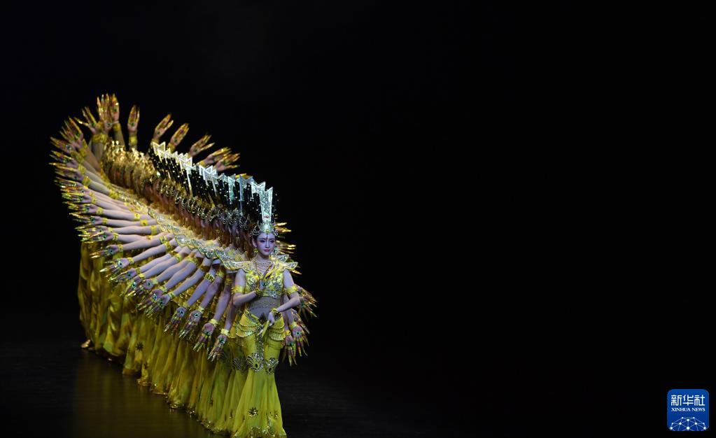 中國殘疾人藝術(shù)團演員在敦煌大劇院表演大型情景音畫(huà)劇《千手千眼》(6月18日攝)。