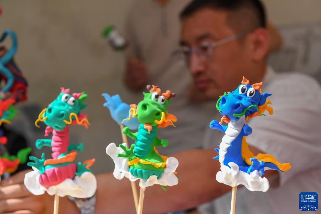 6月22日,手工藝人在吉林省長(cháng)春市伊通河工業(yè)軌跡公園展示非遺手工藝項目。