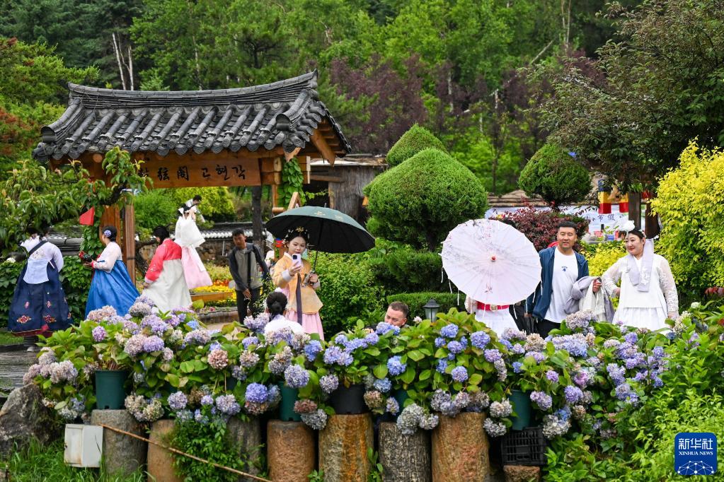 6月22日,游客在位于吉林省延邊朝鮮族自治州延吉市的中國朝鮮族民俗園游覽。