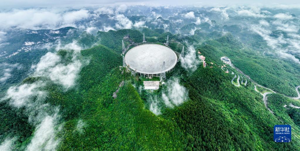 6月22日拍攝的“中國天眼”全景(維護保養期間拍攝,無(wú)人機照片)。