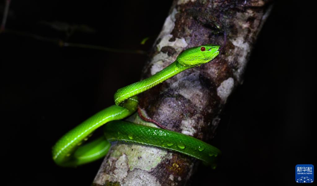 這是在海南熱帶雨林國家公園吊羅山片區拍攝的福建竹葉青(6月13日攝)。
