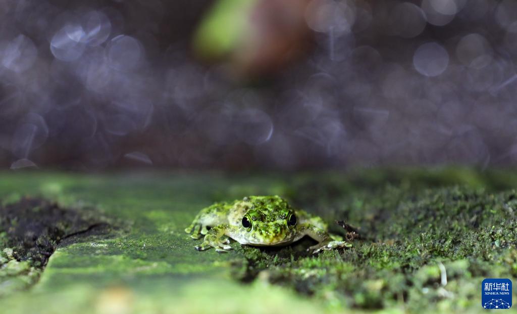 這是在海南熱帶雨林國家公園吊羅山片區拍攝的小湍蛙(6月14日攝)。