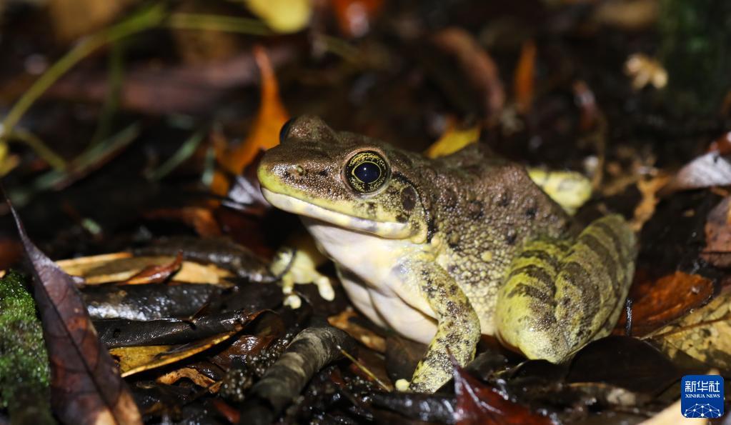 這是在海南熱帶雨林國家公園吊羅山片區拍攝的海南臭蛙(6月13日攝)。
