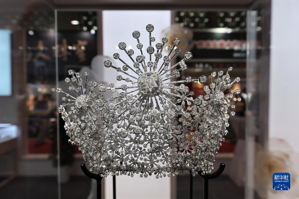 6月22日在2023上海國際珠寶首飾展覽會(huì )上拍攝的鉆石皇冠“永恒之星”。