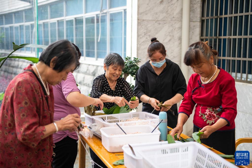 6月20日,老人在漢壽縣漢醫養護院包粽子。