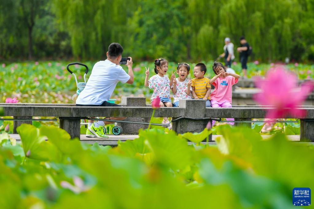 6月23日,小朋友在浙江省湖州市長(cháng)興縣仙山湖景區拍照留念。