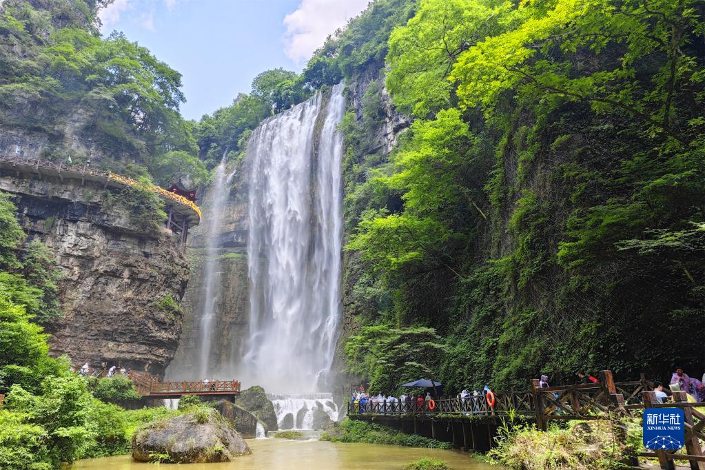 6月23日,游客在湖北省宜昌市夷陵區三峽大瀑布風(fēng)景區游覽。