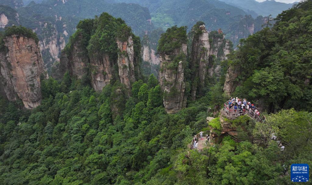 6月23日,游客在湖南張家界國家森林公園黃石寨游覽(無(wú)人機照片)。