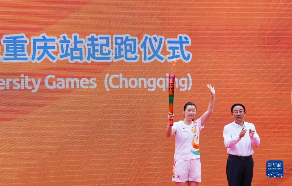 當日,成都第31屆世界大學(xué)生夏季運動(dòng)會(huì )火炬傳遞重慶站在重慶大學(xué)舉行。