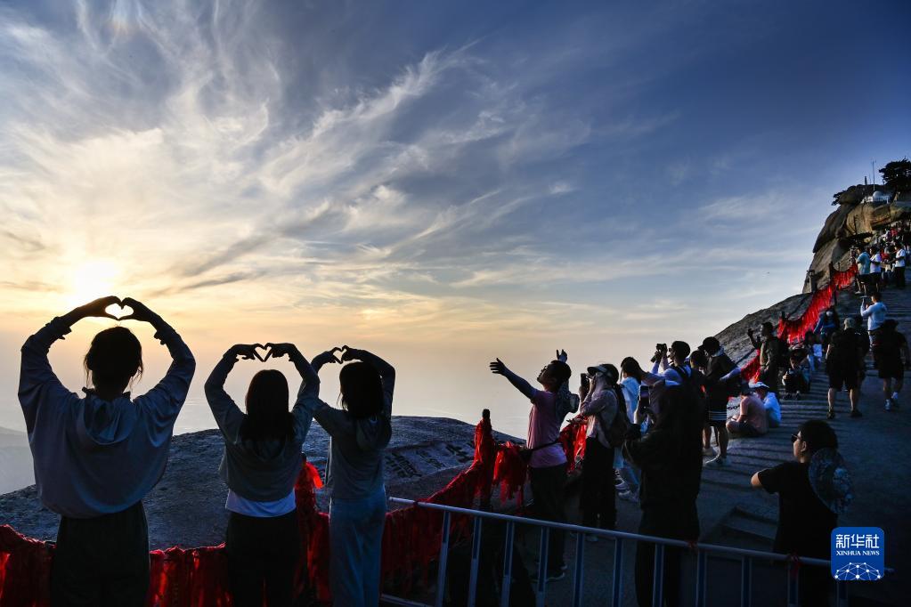 6月23日,游客在華山西峰觀(guān)賞落日。