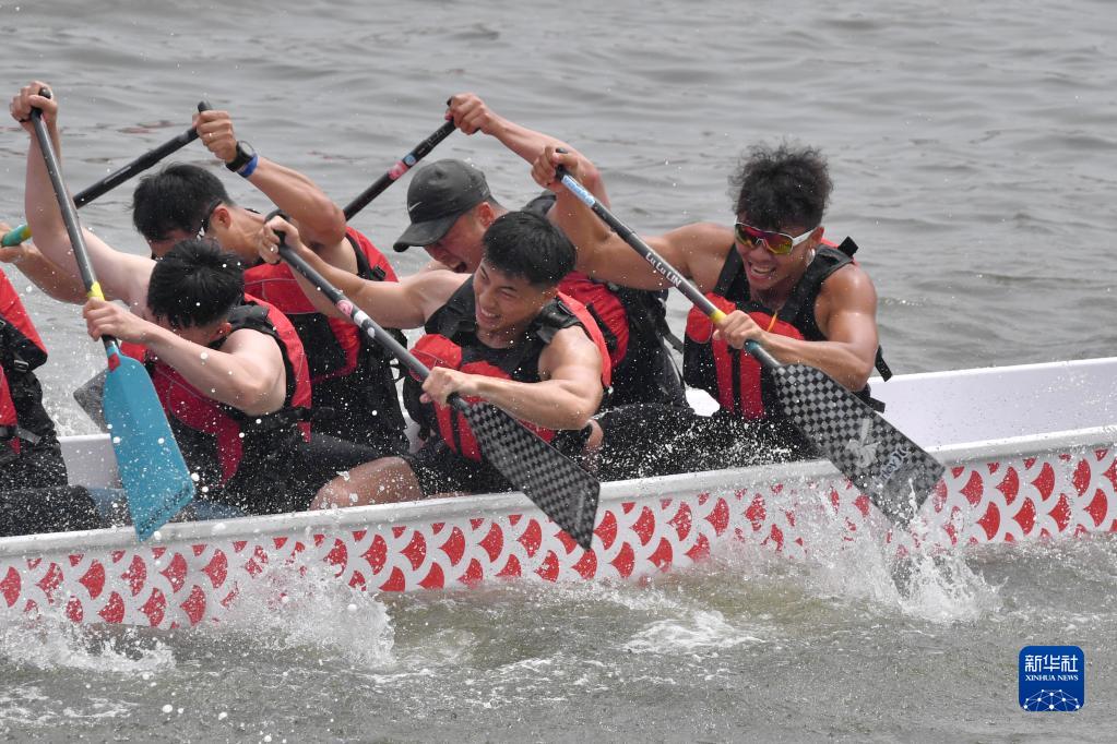 林益宏(右一)在廈門(mén)集美舉行的海峽兩岸龍舟賽上奮力劃槳(2023年6月3日攝)。