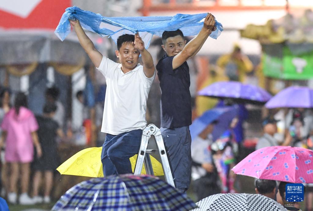6月23日,觀(guān)眾冒雨觀(guān)看球賽。