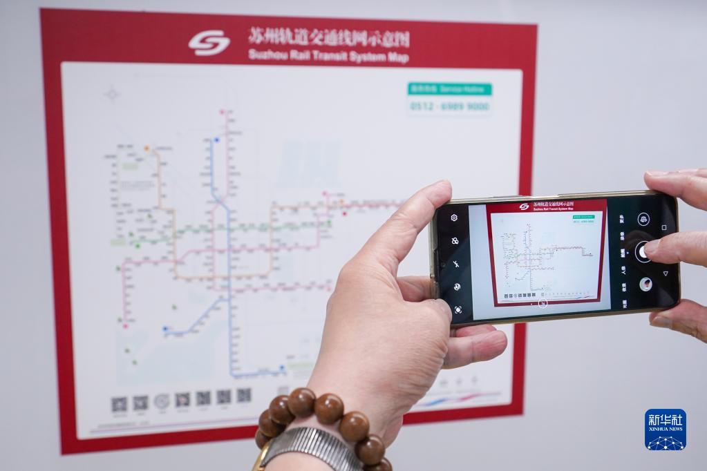 6月24日,乘客用手機拍攝蘇州軌道交通線(xiàn)網(wǎng)示意圖。