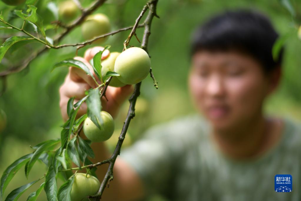 6月24日,村民在貴州省開(kāi)陽(yáng)縣龍水鄉龍溪村烏江河畔的果園采摘蜂糖李。