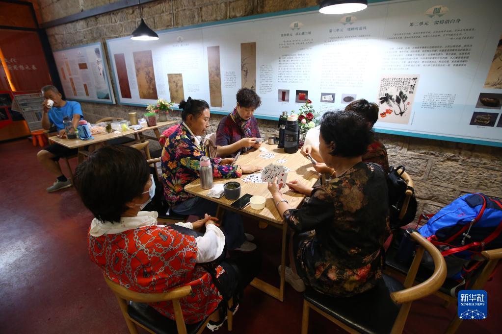 6月24日,市民在濟南市佛慧山人防工程納涼點(diǎn)休閑娛樂(lè )。