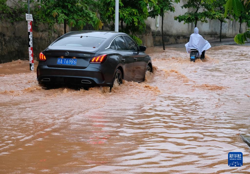 6月24日,市民在廣西南寧市通過(guò)積水路段。