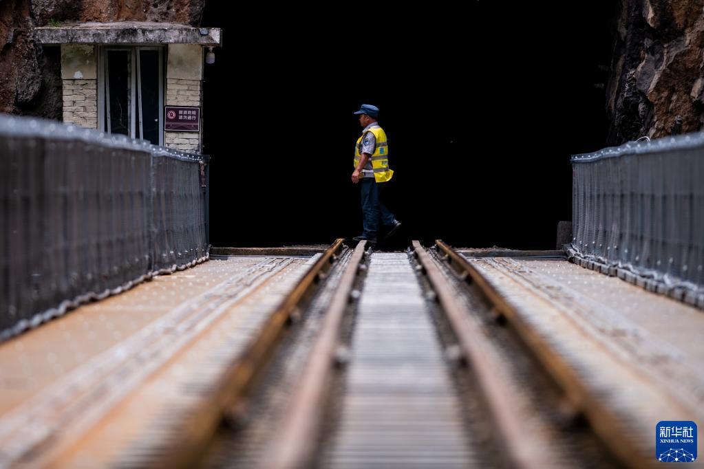 穿上工作服,拿著(zhù)手電筒,穿行在隧道和橋梁間,這是楊有光再熟悉不過(guò)的工作內容?;疖?chē)駛經(jīng)“人字橋”前后,須從兩個(gè)隧道穿過(guò)。為保障行車(chē)安全,楊有光不僅要檢查橋面狀況,還需要精準把握隧道內的情況。他要穿行在隧道內外,巡查大橋整體狀況,沿著(zhù)陡峭的階梯走到橋下,察看零部件狀況?;疖?chē)駛來(lái)時(shí),楊有光站在自己約3平米的值班室門(mén)口跨立候車(chē),目視火車(chē)駛過(guò)“人字橋”,并將通過(guò)時(shí)間記錄下來(lái)。
