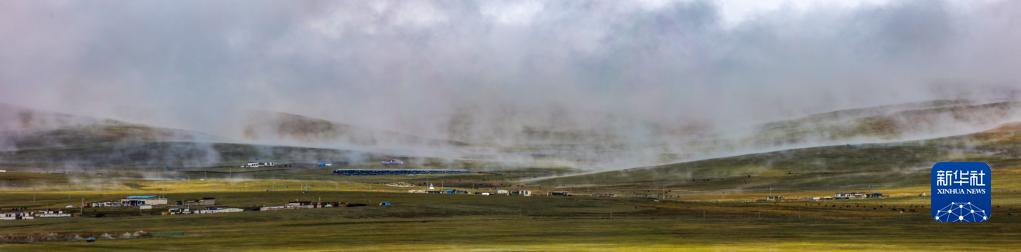 6月16日在國道317線(xiàn)那曲段拍攝的草原晨霧風(fēng)光(拼接照片)。