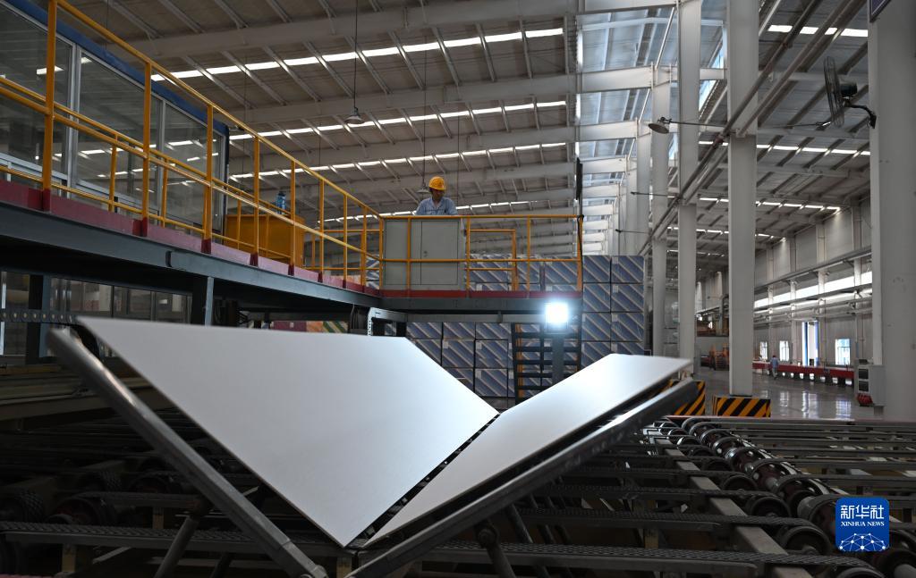 6月25日,工人在隆化縣泰山石膏承德有限公司生產(chǎn)車(chē)間忙碌。