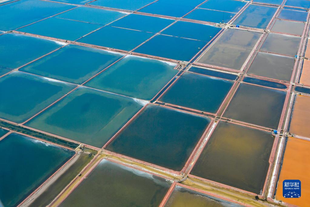 這是6月16日從直升機上拍攝的天津濱海新區一處鹽場(chǎng)。