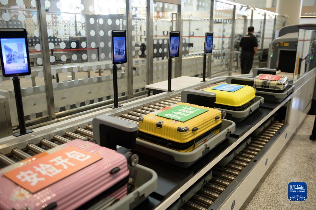 6月25日,在美蘭國際機場(chǎng)國內航班安檢海關(guān)聯(lián)合查驗通道,工作人員在測試設備。