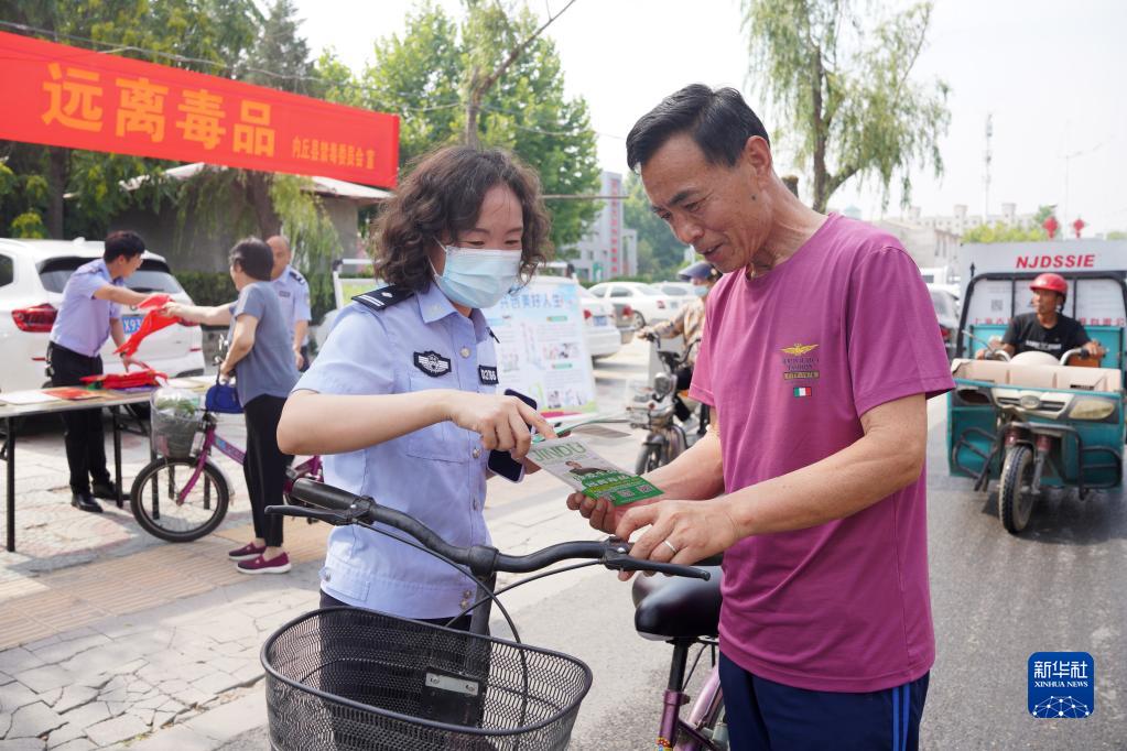 6月25日,河北省邢臺市內丘縣公安局禁毒中隊民警向群眾宣傳禁毒知識。
