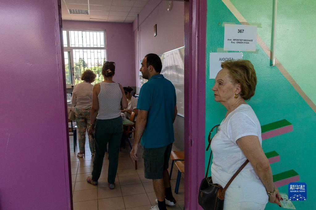6月25日,人們在希臘雅典一處投票站等待投票。