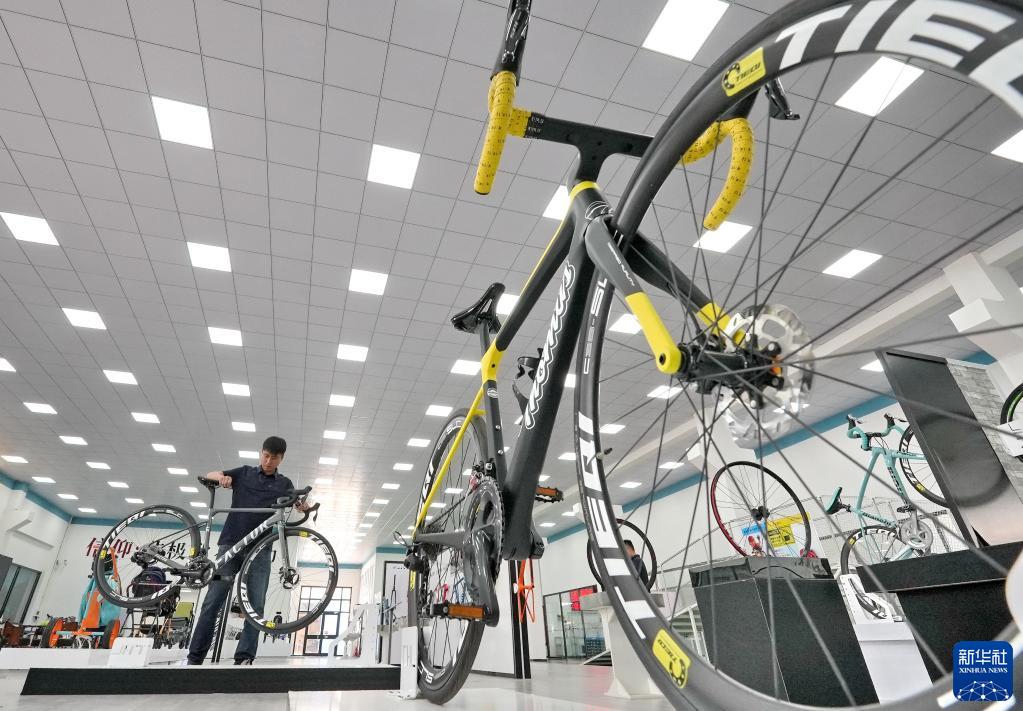 6月25日,唐山市蘆臺經(jīng)濟開(kāi)發(fā)區一家自行車(chē)企業(yè)的工人在展廳布展。