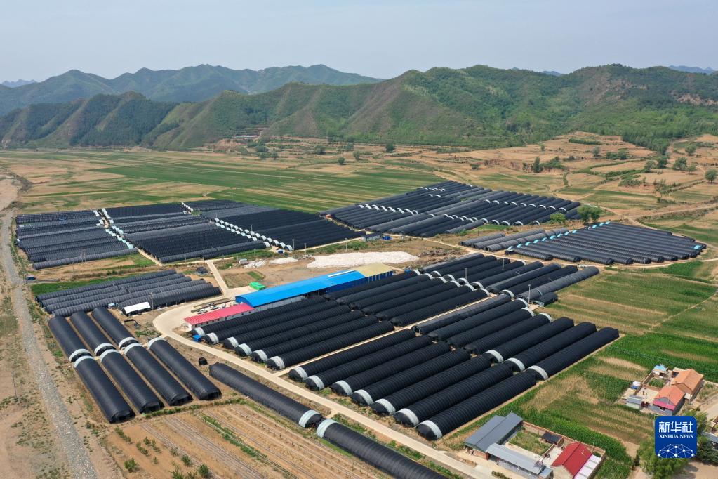 這是隆化縣章吉營(yíng)鎮成片的食用菌大棚(6月26日攝,無(wú)人機照片)。