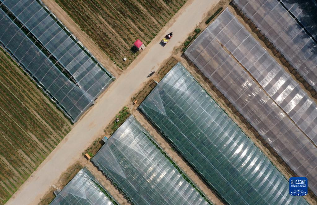 6月26日拍攝的河南省安陽(yáng)市內黃縣梁莊鎮馮莊村的辣椒種植大棚(無(wú)人機照片)。
