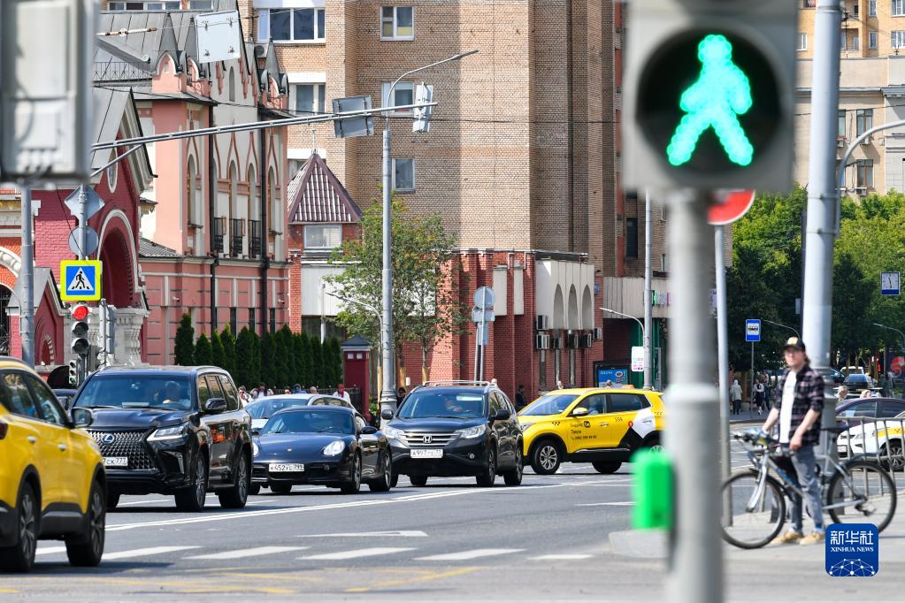 6月26日,在俄羅斯首都莫斯科,車(chē)輛駛過(guò)市內道路。