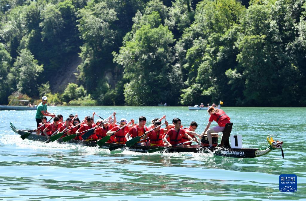 6月25日,在瑞士埃格利紹,瑞士蘇黎世州華僑華人組織的“龍戰隊”參加賽龍舟活動(dòng)。
