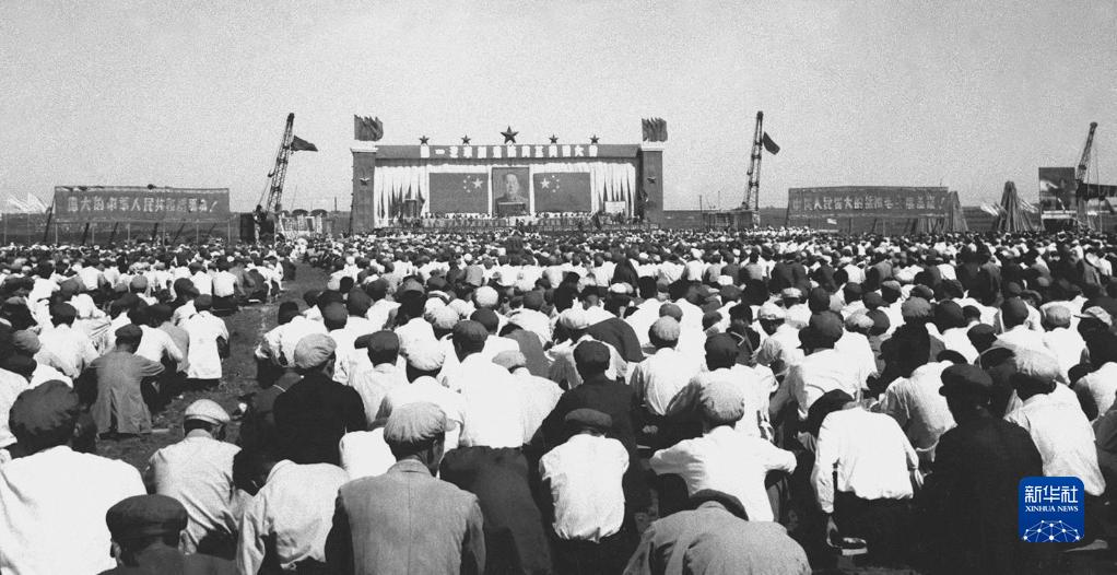1953年7月15日,中國第一座汽車(chē)廠(chǎng)——第一汽車(chē)制造廠(chǎng)在吉林省長(cháng)春市奠基,新中國汽車(chē)工業(yè)開(kāi)始起步。這是一汽奠基典禮大會(huì )會(huì )場(chǎng)(資料照片)。