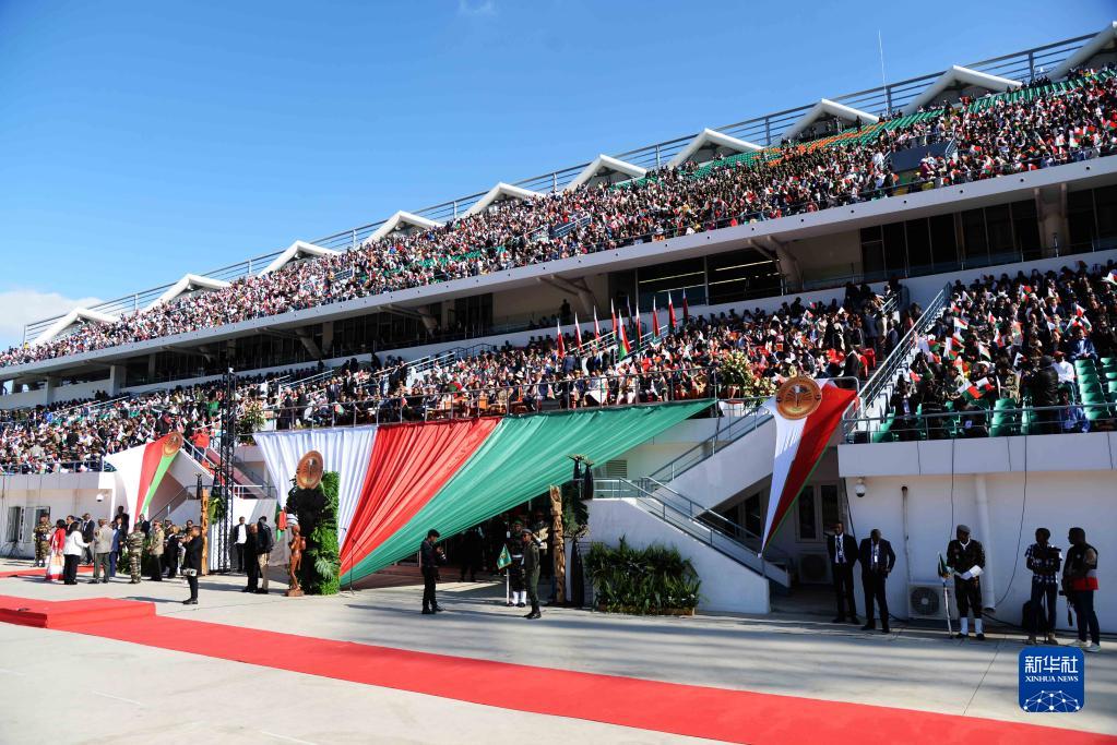 這是6月26日在馬達加斯加首都塔那那利佛拍攝的國慶日閱兵活動(dòng)現場(chǎng)。